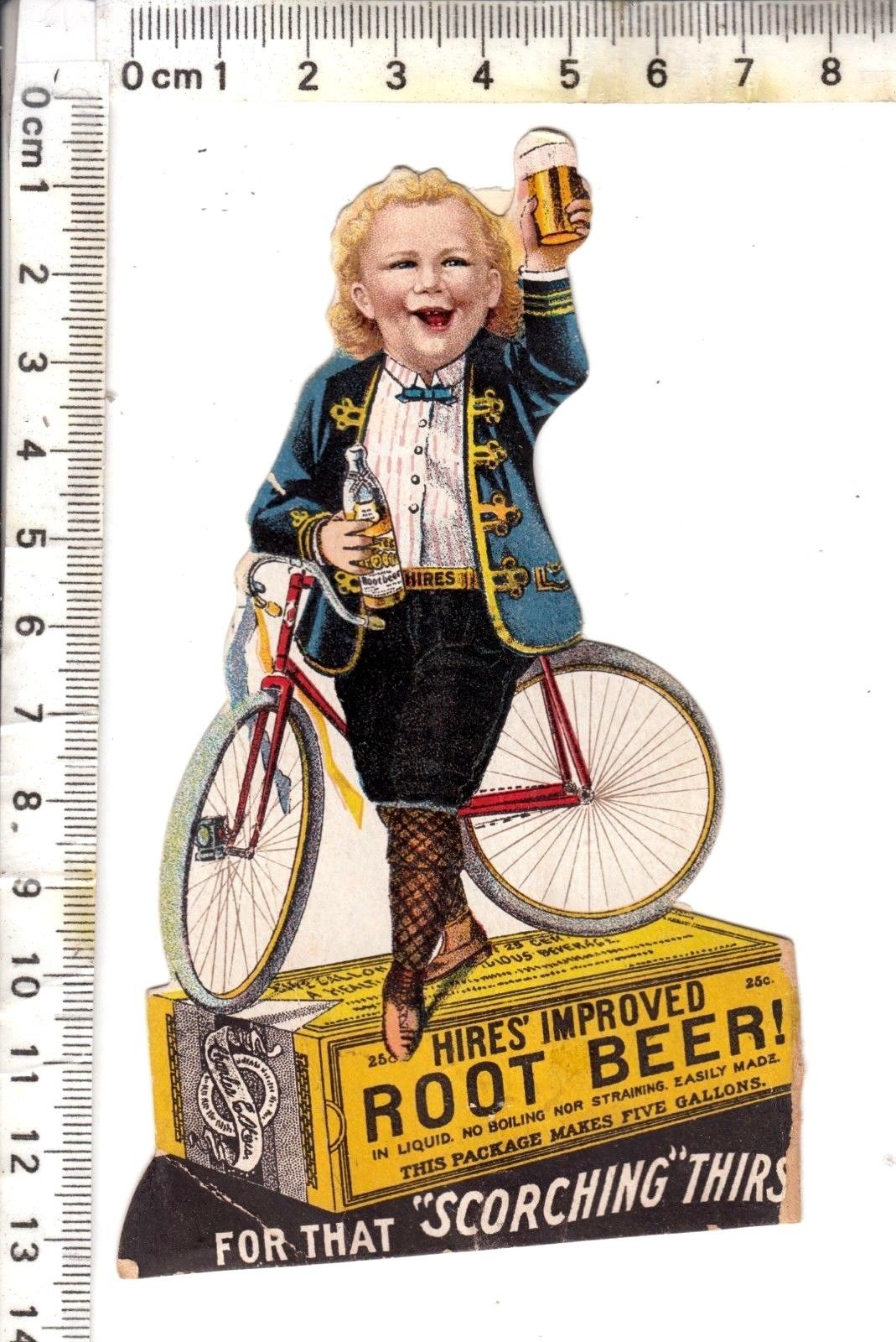 Title (ebay affiliate link): HIRES ROOT BEER - Die Cut BOY on a Vintage BICYCLE / BIKE - NOVELTY TRADE CARD