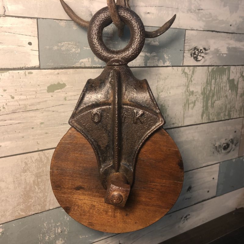 Title (ebay affiliate link): Antique Vintage Cast Iron Myers OK Barn Pulley Old Farm Tool Rustic Primitive