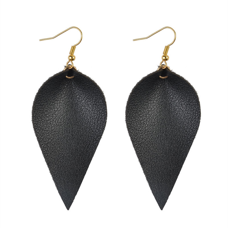 Title (ebay affiliate link): Teardrop Leather Earrings Antique Looking Solid Leather Leaf Dangle Drop Earring