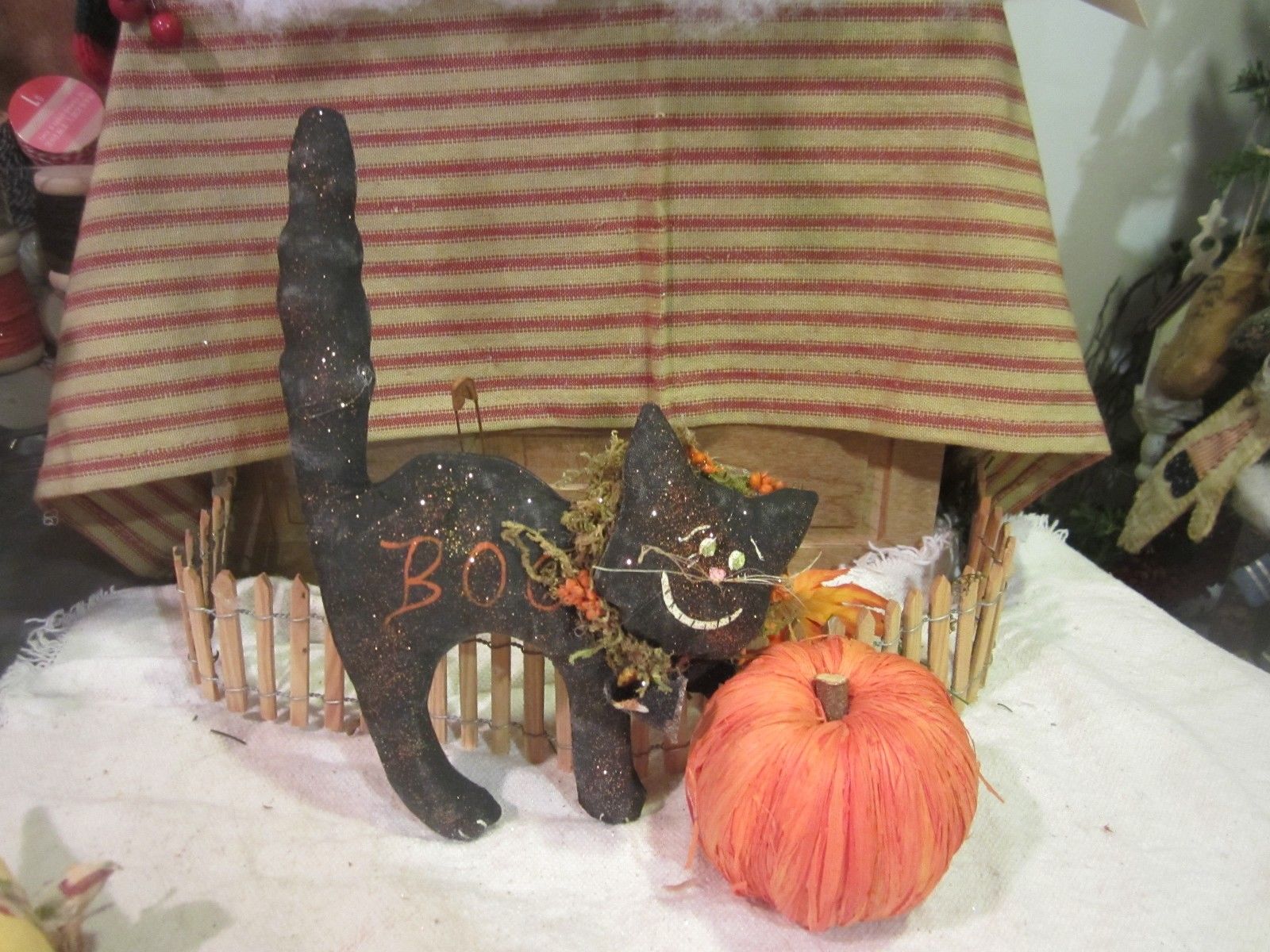 Title (ebay affiliate link): Halloween BOO Cat - Bowl Filler or Ornie - Primitive #1649