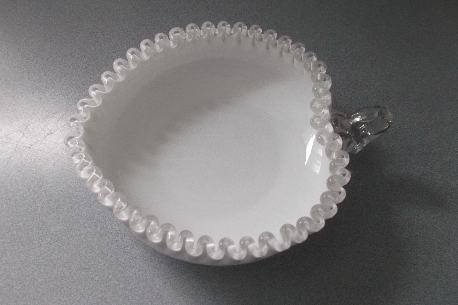 FENTON MILK GLASS SILVER CREST HEART-SHAPED NAPPY CANDY/NUT BOWL DISH W/HANDLE