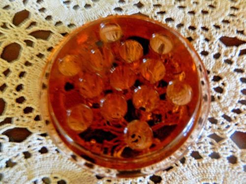 Vintage Pink / Peach Glass 13 Hole Flower Frog 3 3/4" Diameter