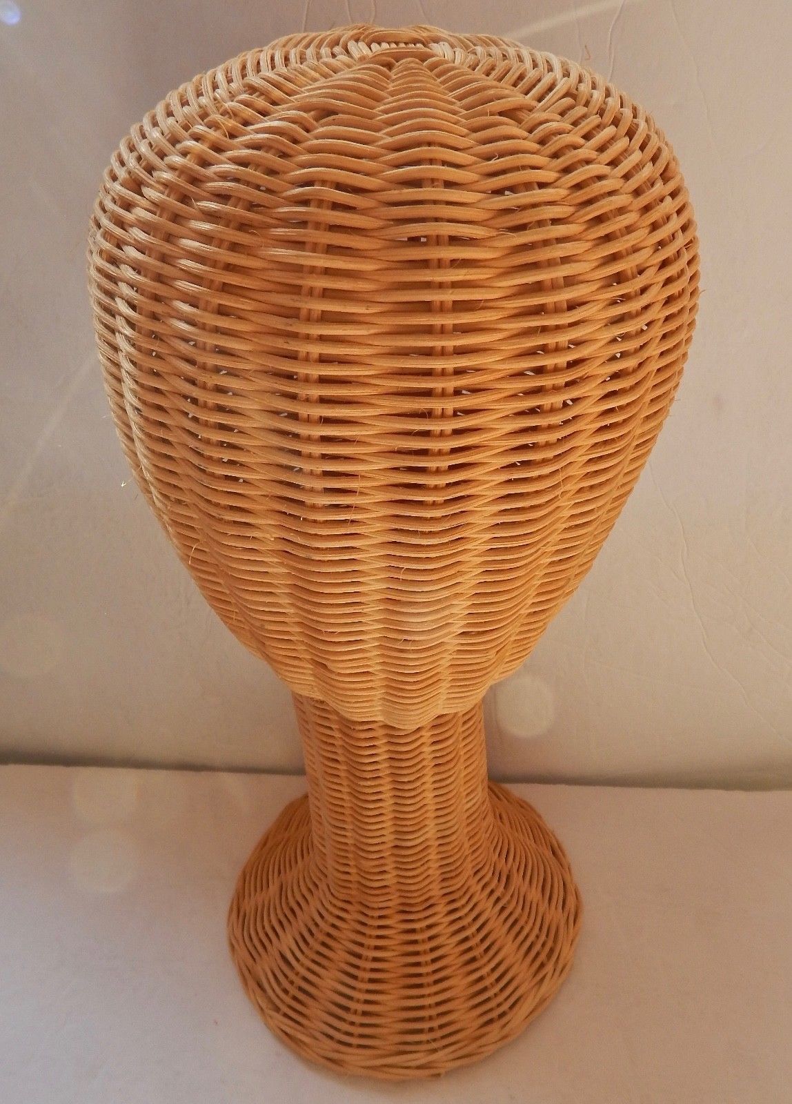 VINTAGE Wicker Head Form Hat Wig Stand, 15" Tall