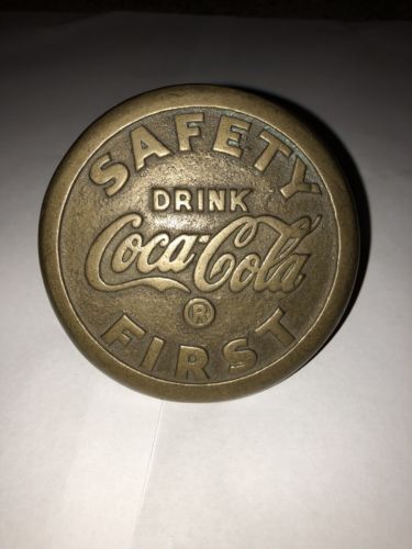 Title (ebay affiliate link): 1930s Original DRINK COCA-COLA - SAFETY FIRST Soda Sidewalk Marker Metal Sign