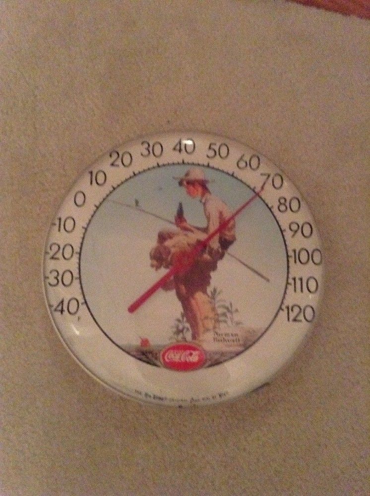 Title (ebay affiliate link): Vintage 12" Coca Cola Advertising Thermometer Norman Rockwell Fishing Farm