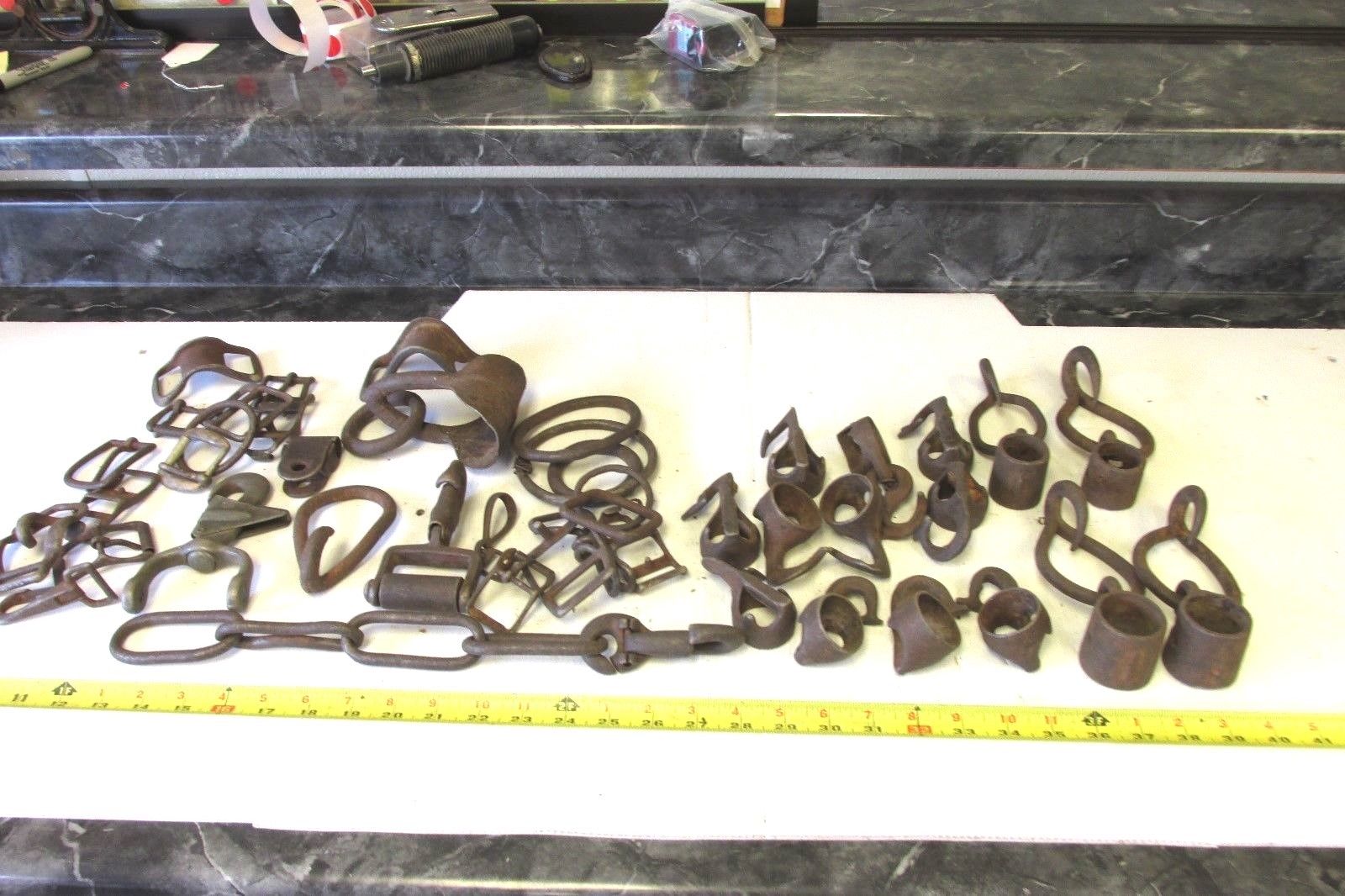 Title (ebay affiliate link): BOX OLD ANTIQUE WOOD HORSE SINGLE TREE & LEATHER HARNESS PARTS