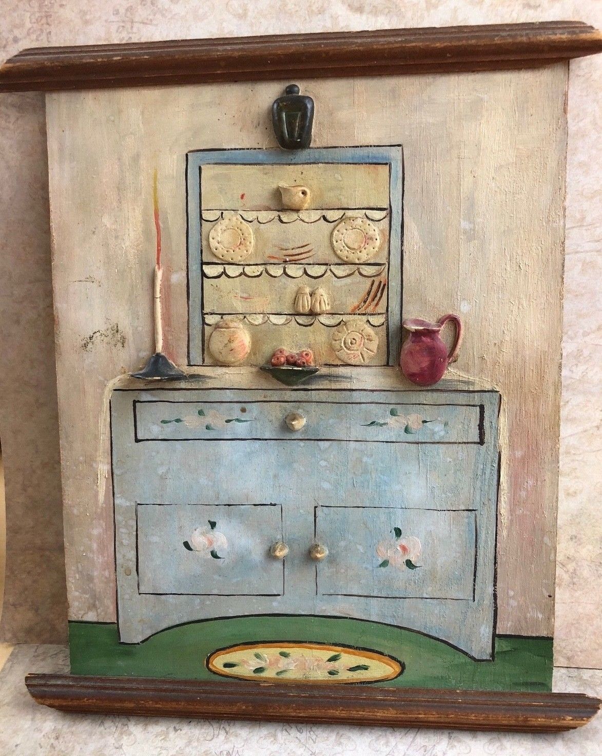 Title (ebay affiliate link): Antique Miniature 1900s Diorama Folk Art Carved Painting Cupboard 3-D Primitive