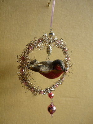 VTG.PAPIER BIRD IN TINSEL ROUND CHRISTMAS TREE ORNAMENT