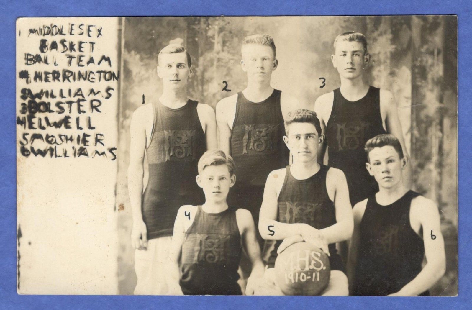 Title (ebay affiliate link): Middlesex NY 1910-1911 Basketball Team, 6 Named Players Real Photo RPPC Postcard