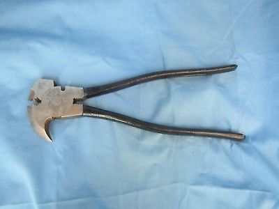 NICE EAGLE RANCH FARM BARBED WIRE CUTTER CRIMPER HAMMER CLAW ANTIQUE WOOD TOOL
