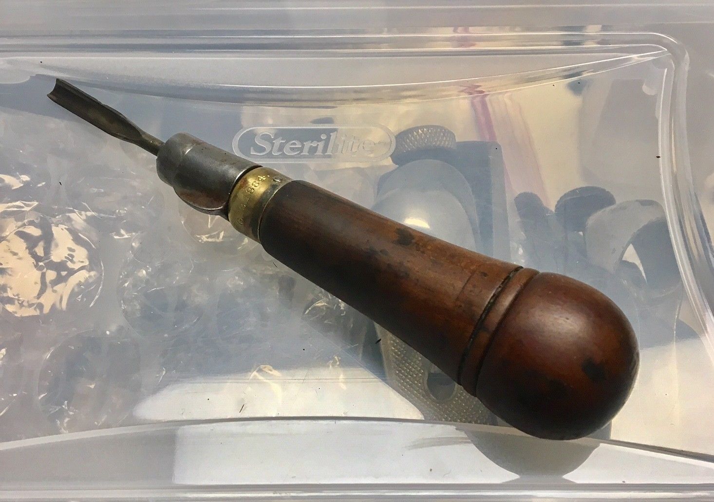 Title (ebay affiliate link): Vintage Wood Handle Multi-tool with 8 bits in the handle