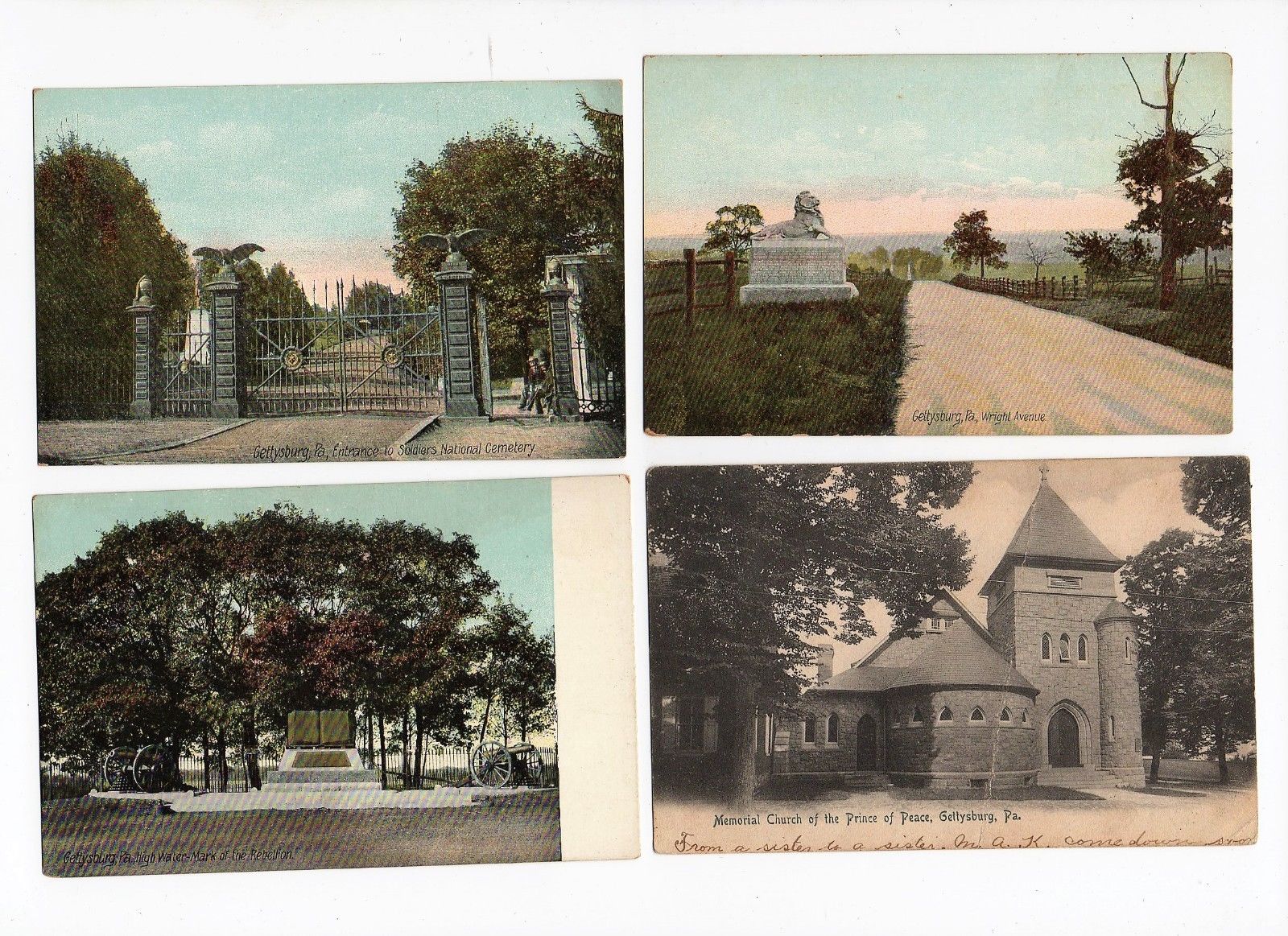 4 Gettysburg PA Postcard.1910 Era HIGH WATER MARK Monument WRIGHT AVE CEMETERY