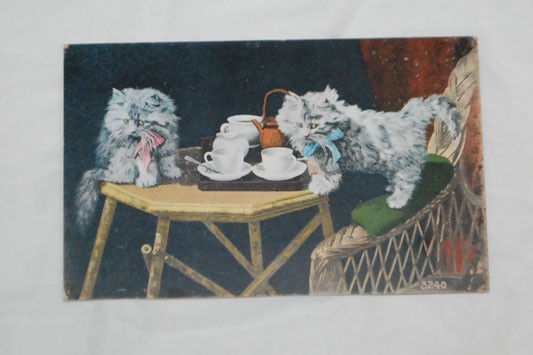 Antique Postcard Cats Tea Cups Photo
