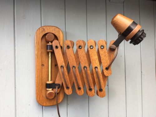 Title (ebay affiliate link): Vintage Wooden Oak Scissor Lamp Wall Desk Mid Century-70s Concertina German