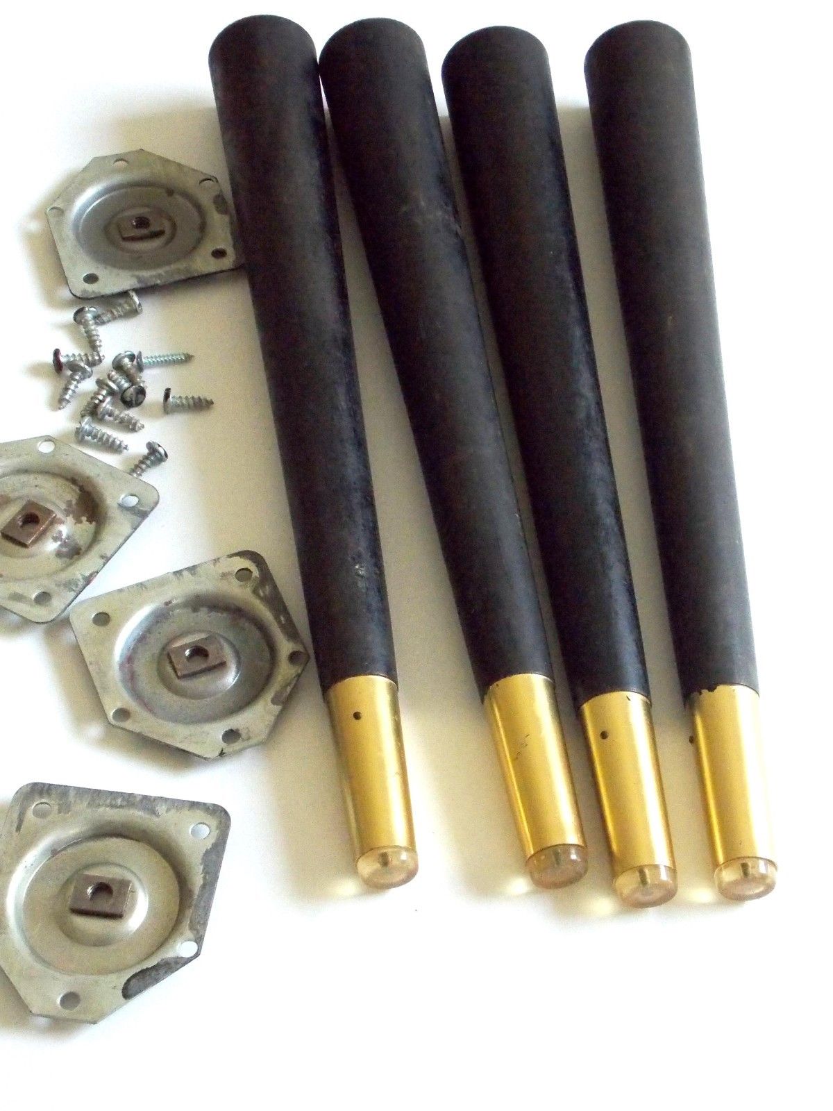 Title (ebay affiliate link): 4 Vintage Mid Century Modern 14" Tapered Wood Table Legs Brass w/ Brackets