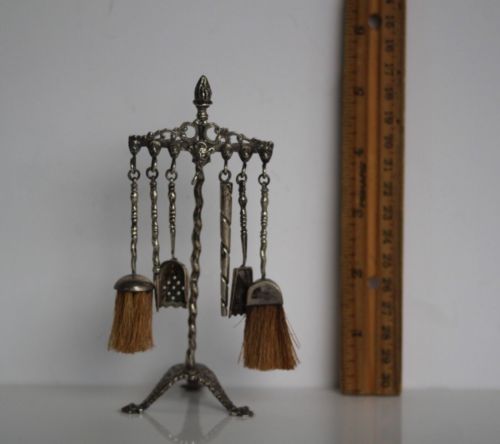 Title (ebay affiliate link): Antique c.1900 800 Silver Miniature Dollhouse Furniture Fireplace Tools on Stand