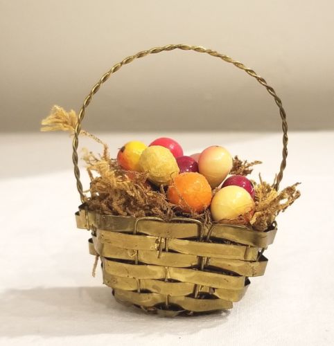 Title (ebay affiliate link): Miniature Brass Basket, with Composition Fruit. Germany. 1930s. Candy Cont.