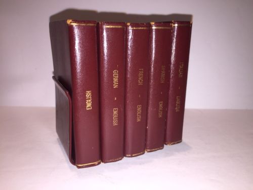 Title (ebay affiliate link): Vintage DE LUXE EDITION Midget Series Dictionaries Set of 5 Leather Bound