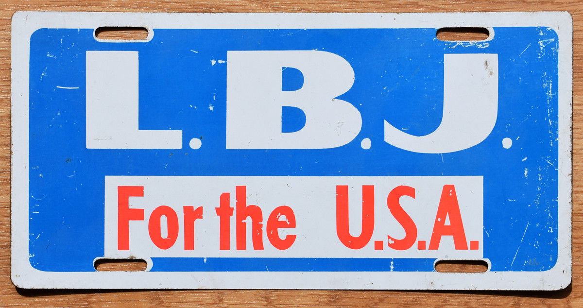 Title (ebay affiliate link): 1964 LBJ License Plate - front booster plate