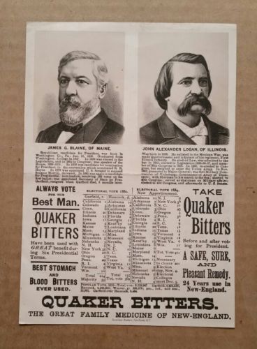 Title (ebay affiliate link): Quaker Bitters,Presidential Election Trade Card (Cleveland vs Blaine) 1884
