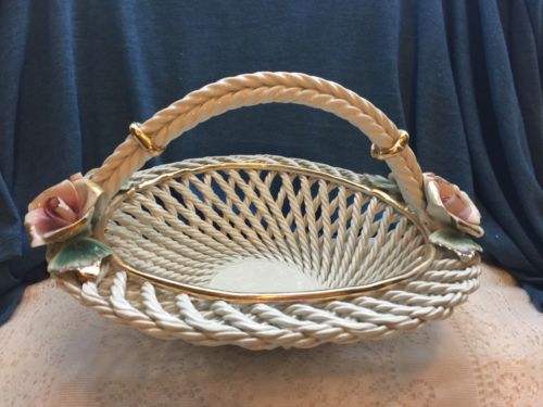 Title (ebay affiliate link): Vintage Capodimonte Italy Hand Painted Weave Basket with Pink Roses*