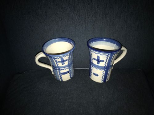 Title (ebay affiliate link): Dorchester Pottery Mugs Blue Decorated Signed Nice Form No Reserve