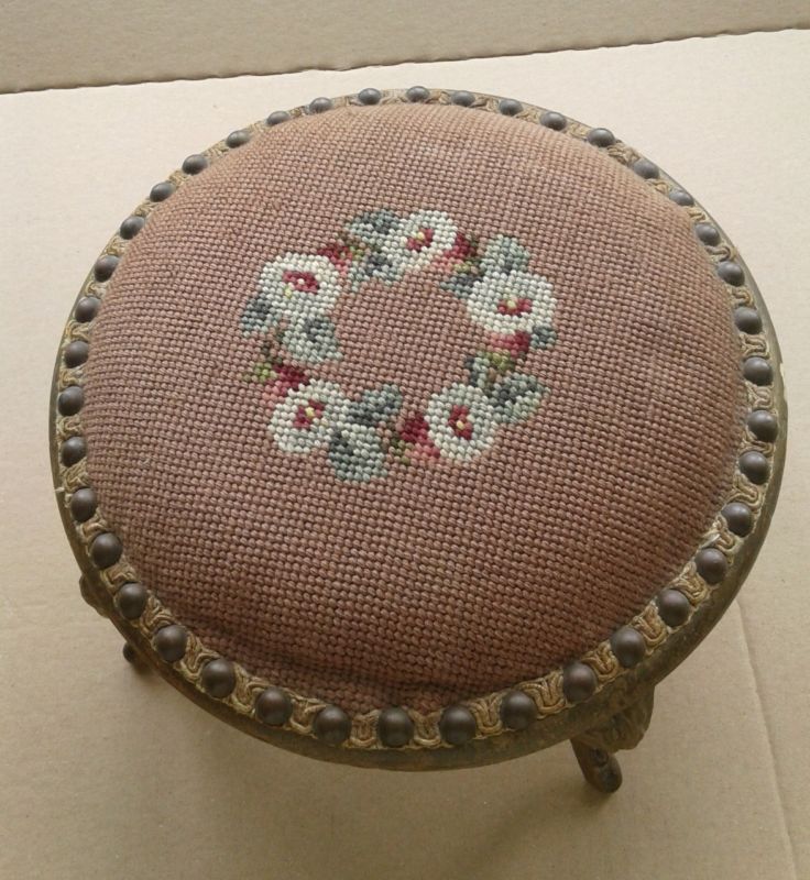 Title (ebay affiliate link): Vintage FOOT STOOL EMBROIDERED EMBOSSED OLD TAPESTRY ANTIQUE FURNITURE
