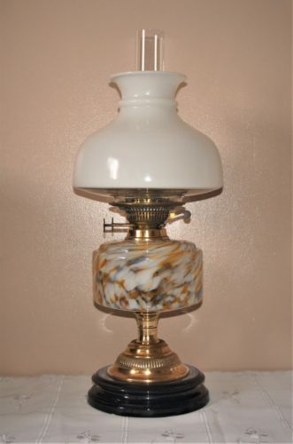 Title (ebay affiliate link): A Vintage Brass & Glass Oil Lamp~Chimney,White Shade~Duplex Twin Burner