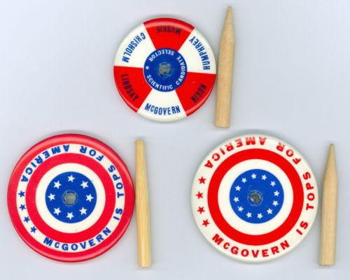 Title (ebay affiliate link): 3 Vintage 1972 US Senator George McGovern Political Campaign Spinning Tops