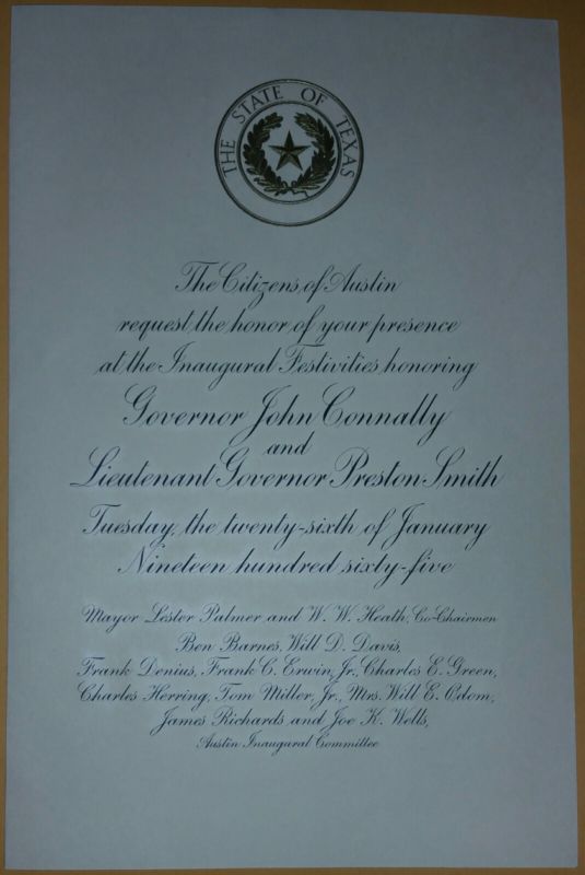 RARE JOHN CONNALLY 1965 INAUGURATION INVITATION SET KENNEDY ASSASSINATION JFK TX