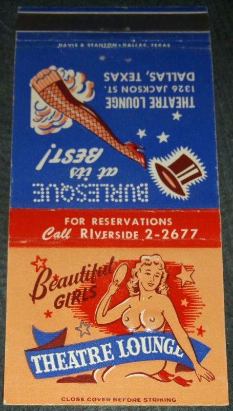 RARE ORIGINAL 1960s THEATRE LOUNGE DALLAS TX MATCHBOOK COVER JFK ASSASSINATION