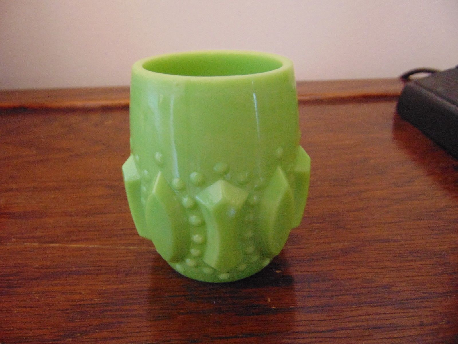 VINTAGE JADEITE GREEN MILK GLASS TOOTH PICK HOLDER 2 3/8" TALL
