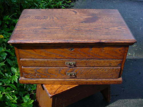 Antique VTG Jennings Chestnut Wood Tool Chest Machinist Tool Box / Jewelry Chest