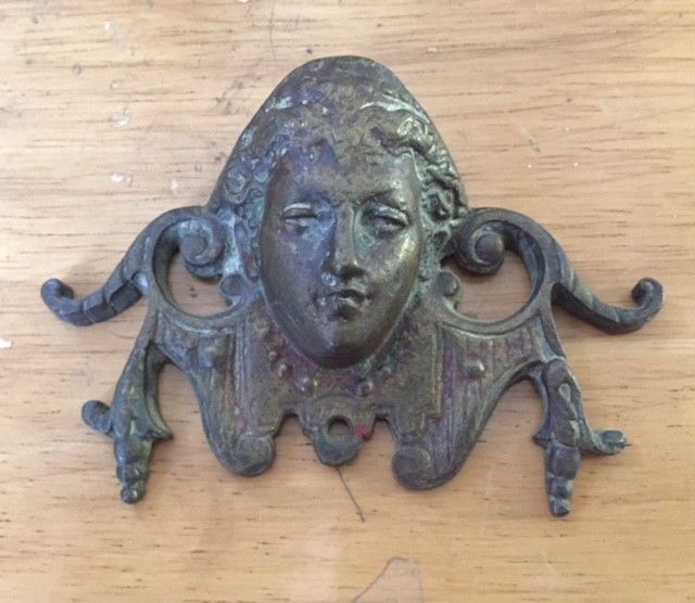 Antique cast brass wall clock decoration accessory woman''s head Victorian part