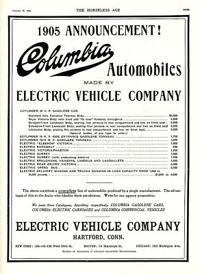 1905 COLUMBIA Automobiles AD.16 Models Priced. Hartford