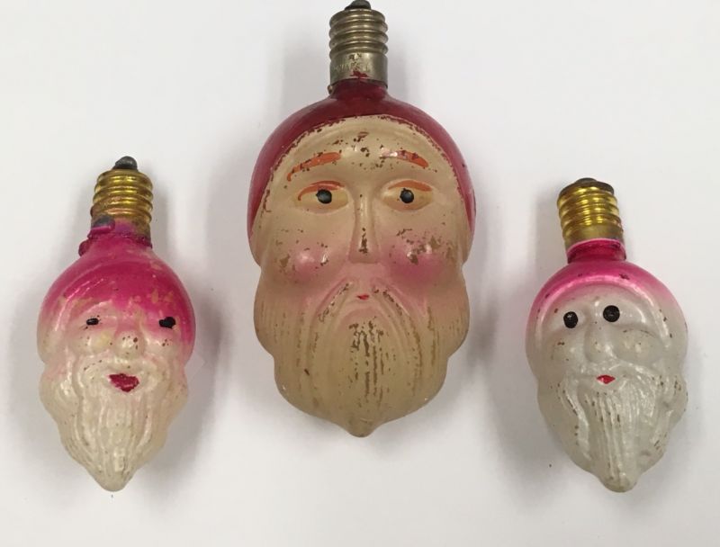 Title (ebay affiliate link): (3) Vintage C-6 Christmas Figural Santa Head Bulbs