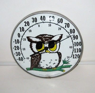 Title (ebay affiliate link): BIG EYED OWL THE ORIGINAL JUMBO DIAL OHIO THERMOMETER CO OUTDOOR TIN THERMOMETER