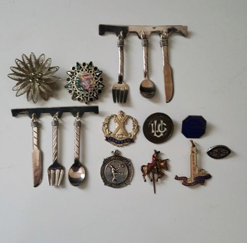 Title (ebay affiliate link): Job lot Antique Vintage Silver brooches and enamel badges..