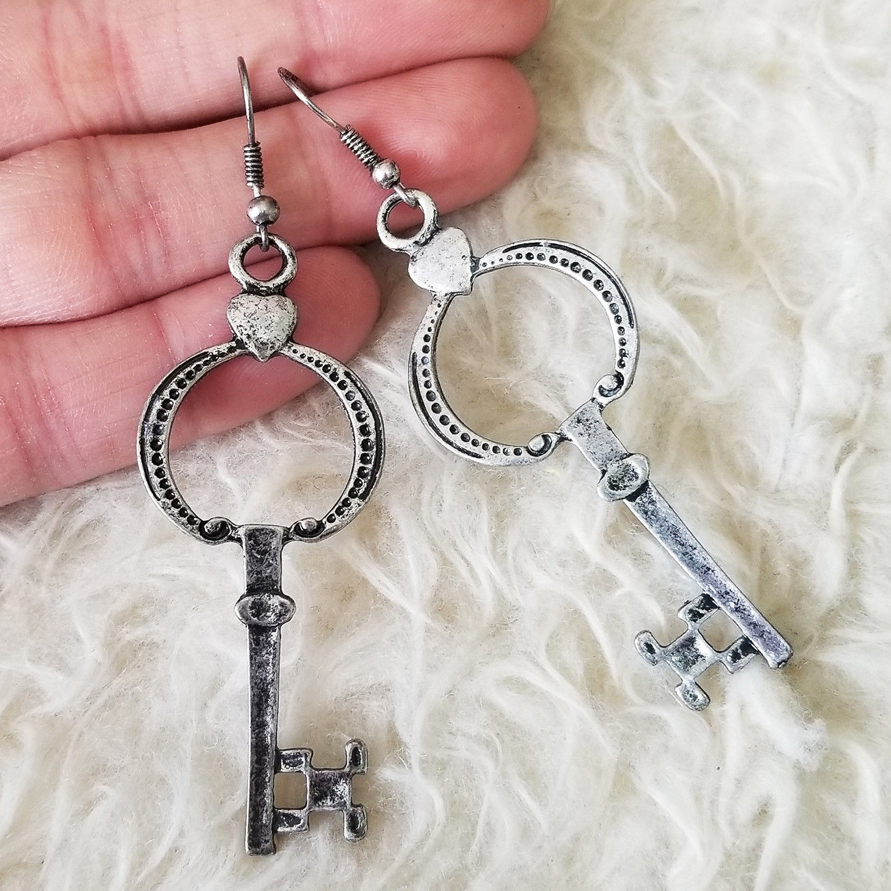Title (ebay affiliate link): Cute Womens Antique-Tone Metal Key Chandelier Charm Dangle Drop Hook Earrings