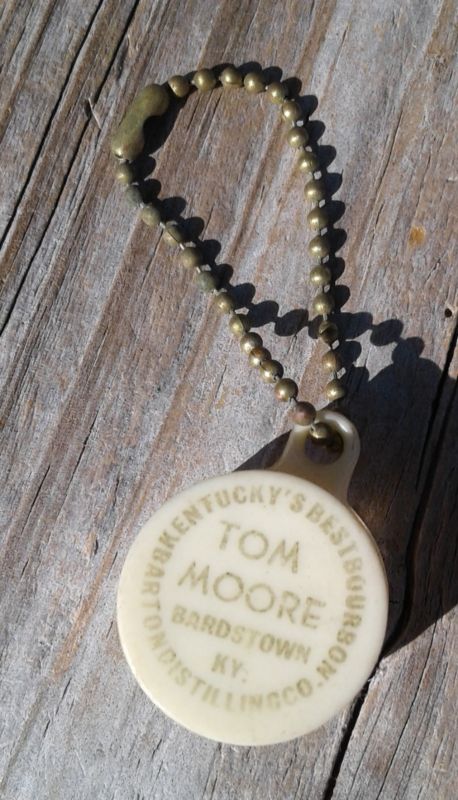 Title (ebay affiliate link): VINTAGE TOM MOORE DICE KEY CHAIN BARDSTOWN KY. BARTON DISTILLING CO.