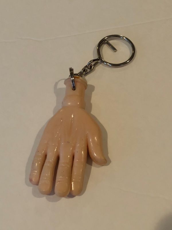 Title (ebay affiliate link): VINTAGE Key Ring with SOFT PLASTIC FLESH COLOR HAND & WRIST 1980s