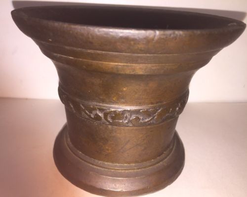 Title (ebay affiliate link): Estate Find Antique Solid Bronze Mortar Raised Decoration 17th 18th 19th C .?