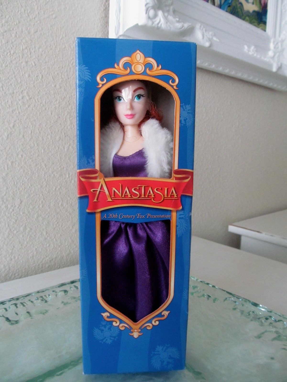 Title (ebay affiliate link): NEW Antique Vintage Anastasia Growing Hair Doll 20th Century Fox Purple Dress $