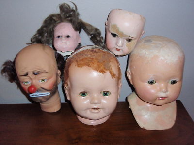 Title (ebay affiliate link): 5 Vintage Doll Heads As Vinyl, Compo, and Paper Mache