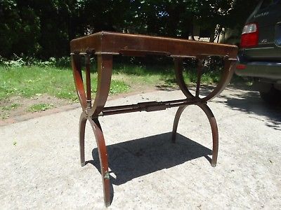 VINTAGE ANTIQUE TABLE WITH BRASS DECOR