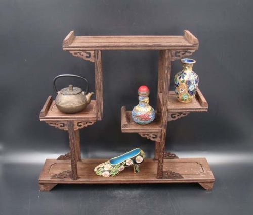 Title (ebay affiliate link): Rare solid hardwood curio shelves Stand Shelf Handmade Carving Deco Art