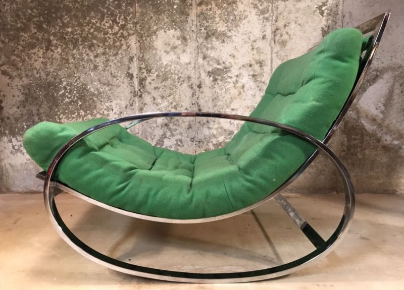 Title (ebay affiliate link): Renato Zevi for Selig Ellipse Chrome Rocking Chair Rocker Milo Baughman Style