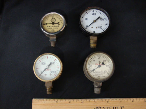 Title (ebay affiliate link): Lot of 4 Vintage Pressure Gauges Steampunk-Industrial - Brass, Chrome & Painted