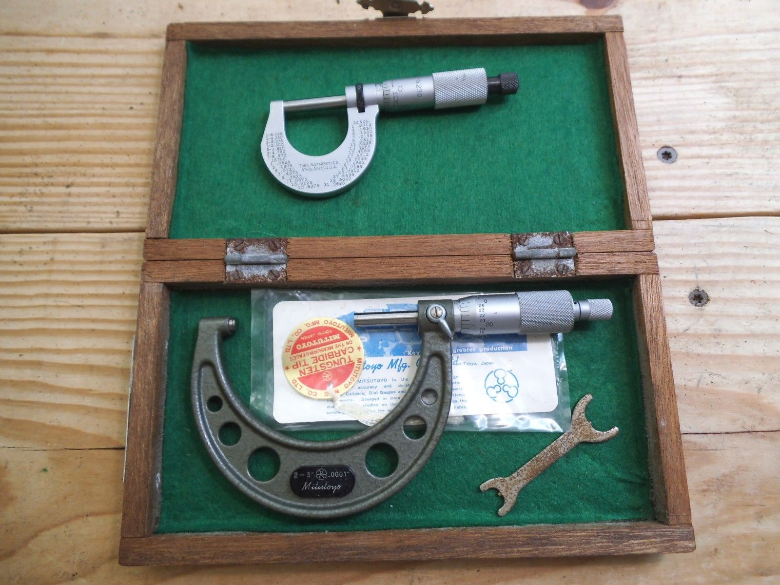 Title (ebay affiliate link): Micrometer Set Mitutoyo 103-217 2-3" + Starrett 230 1" Machinist Tool Vintage