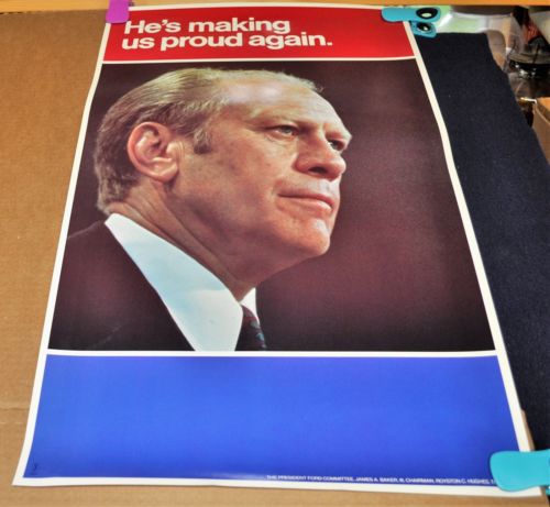 Title (ebay affiliate link): Vintage 1976 President Gerald Ford Political Campaign Large Poster PROUD
